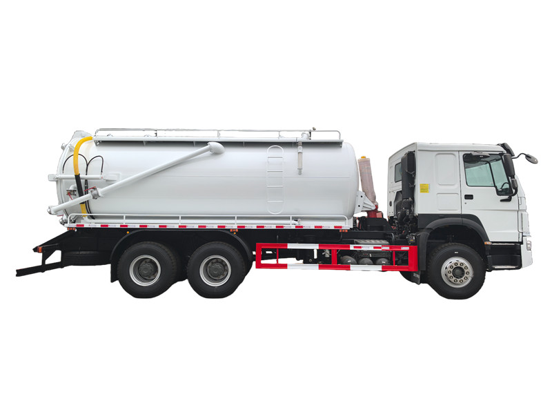 HOWO 15cbm vakuumsugbil består av ett HOWO-chassi, vakuumpumpsystem, förseglad tank, sugrör och hydraulsystem. Tanken är tillverkad av högkvalitativt kolstål eller rostfritt stål, vilket ger korrosions- och tryckbeständighet. Vakuumpumpen har höga sughastigheter och långa kontinuerliga driftstider, vilket gör den lämplig för en mängd olika komplexa arbetsförhållanden. Tanken har också en självlossningsfunktion som gör att den kan lutas i en vid vinkel för att säkerställa grundlig rengöring.