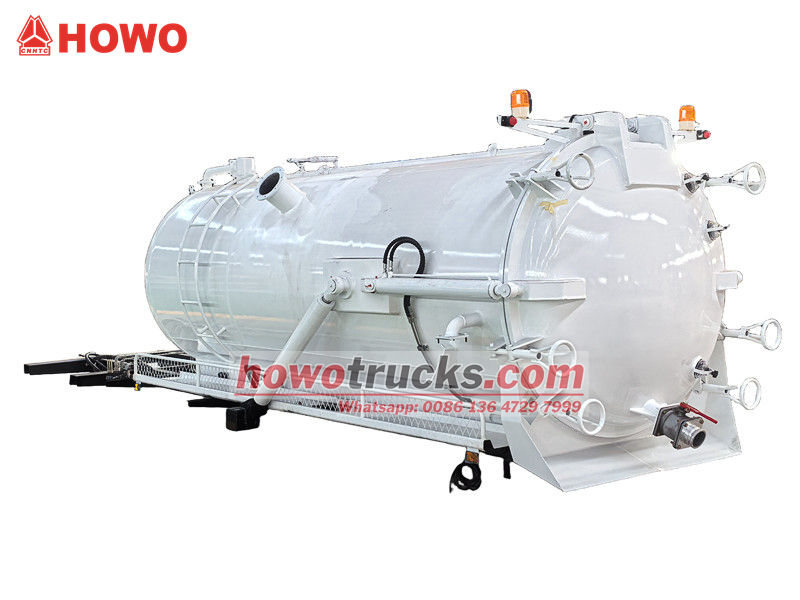 10 cbm karosserikit för dräneringsrengöringstankbil (även kallade 10 000 liters vakuumtankbilsöverbyggnad, 10 cbm septiktankpumpbilsöverbyggnad, 10 cbm septiktankpumptankbilsöverbyggnad, vakuumsugbilsöverbyggnad, vakuumtankbilsöverbyggnad, avloppsavfallstankbilsöverbyggnad) Den kommer att installeras på chassit och användas för att rengöra och samla upp vätskor som smutsvatten, slam, septiktankar, råolja etc. Den är lämplig för rengöring av avlopp, kloakbrunnar, brunnar, rännor etc.