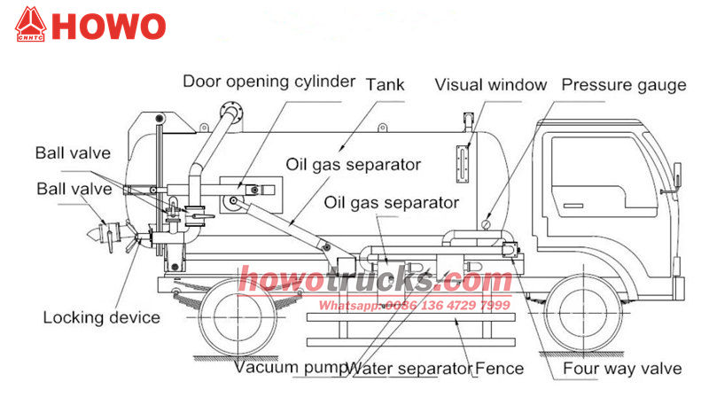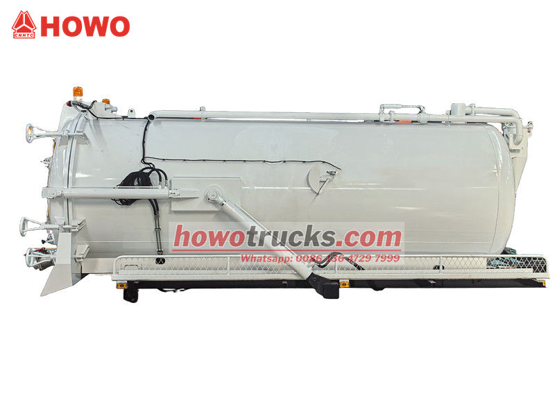 Vakuumpumpen genererar undertryck och drar in avloppsvatten, slam och andra föroreningar i en sluten avloppstank genom en sugslang. Tanken är utrustad med en överfyllningsskyddsanordning för att förhindra återflöde av avloppsvatten. dräneringsrengöring tankbil karosserisats är utrustad med en nivåmätare och tryckmätare för att säkerställa effektiv och säker drift.