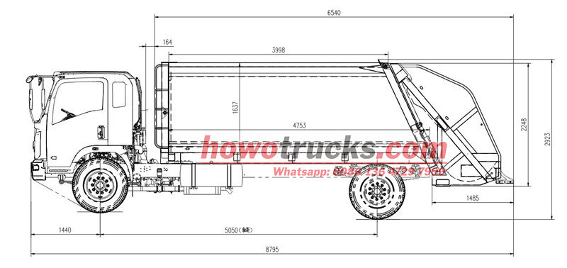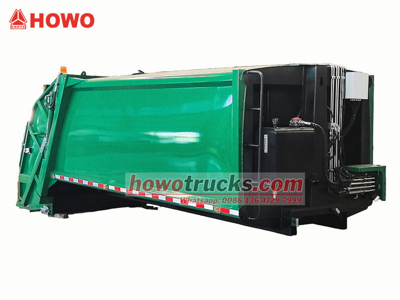 Den bakre lastkomprimatorns kaross på 10 kubikmeter är fordonets centrala operativsystem och består huvudsakligen av ett förseglat soputrymme, en kompressionspåskjutare och en lastmekanism. Den robusta och hållbara strukturen och den utmärkta tätningen förhindrar läckage av avloppsvatten och lukt. Under drift, efter att lastningsbehållaren mottagit soporna, skrapar en hydrauliskt driven skrapa in dem i utrymmet. Kompressionspåskjutaren applicerar sedan tryck, vilket komprimerar soporna för att minska volymen och öka lastkapaciteten. Den övre lastkapaciteten är 12 kubikmeter och stöder en mängd olika lastnings- och lossningsmetoder för att möta olika driftsbehov.