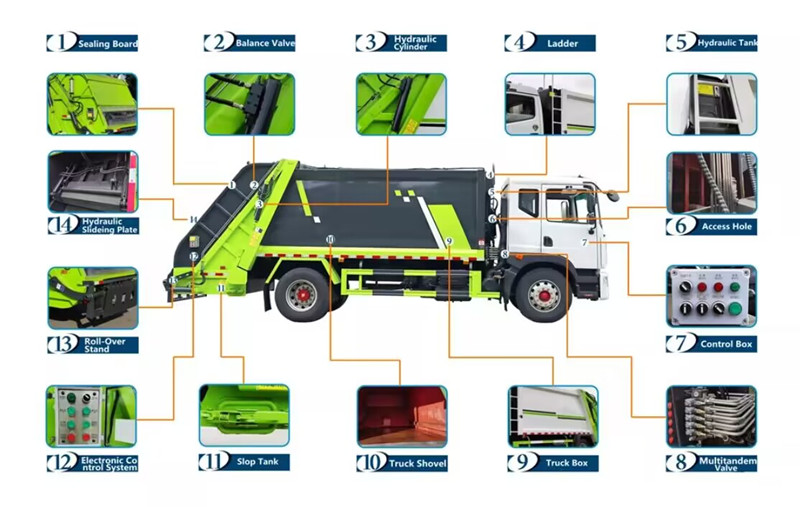●Kraftfull automatisering: Ett intelligent elektroniskt styrsystem automatiserar avfallsinsamling och komprimering, vilket minskar arbetskostnaderna.