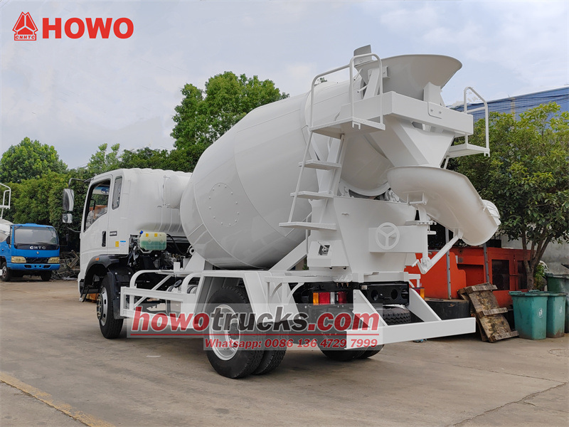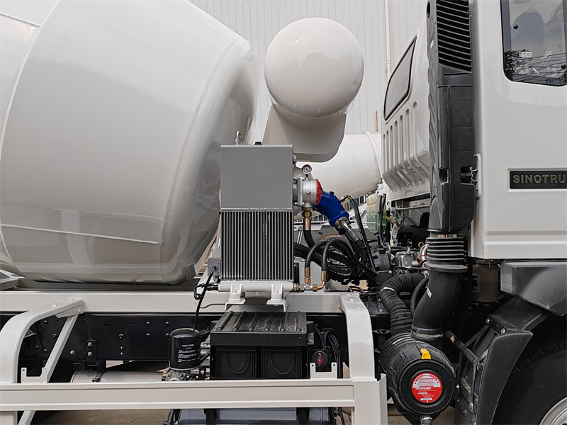 HOWO:s 5-kubikmeters betongblandare använder HOWO 2080-raders halvhytt, med en totalvikt på 16 ton och en hjulbas på 3800 mm. Den är utrustad med en Sinotruk MC05.18-40 180-hästkrafters motor och en HW90510C 10-växlad växellåda. Den övre blandningstanken har en kapacitet på 5 kubikmeter och är tillverkad av Q355 manganstål. Tankkroppen är 4 mm och topplocket är 6 mm. Den är utrustad med en Keyi-reducerare, en italiensk Interpap hydraulpump och motor, en kinesisktillverkad kylare, en luftkontrollboxenhet, en vattentankkapacitet på 400 liter, lufttrycksvattenförsörjning, dubbelsidiga kontrollhandtag baktill, länkarmsdrift och låg resthalt.
