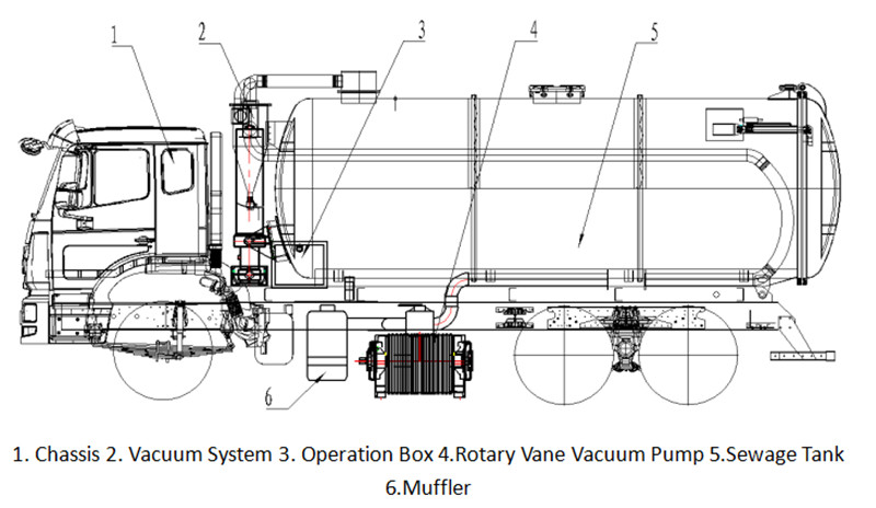 ● Den använder en tekniskt avancerad vattenringvakuumpump, som ger stark sugkraft och ett långt sugområde, vilket gör den särskilt lämplig för pumpning, transport och tömning av slam från avlopp.