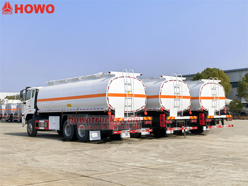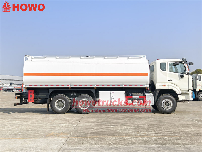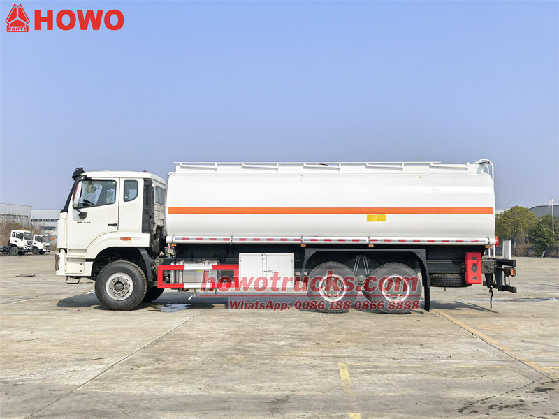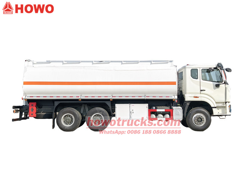 Oljetankens faktiska volym är25000 liter. Kolstål Q235 används som skyddsmaterial. Tankkroppen är tillverkad av kolstål med en tjocklek av minst5mm. Howo-bränsletankbilen är utrustad med kinesiskakändmärkespumpar, ventiler och rör, samt en uppsättning bränslefördelare. Oljetanken är utrustad med en stege för enkel användning och kan utformas i flera fack efter behov.