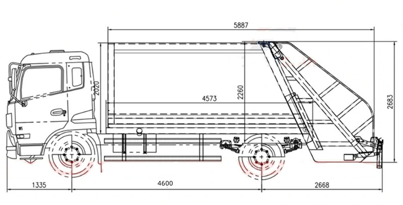 ●Den uppnår automatisk komprimering och lossning av sopor genom hydraulisk transmission, vilket avsevärt förbättrar sophämtning och transporteffektivitet.