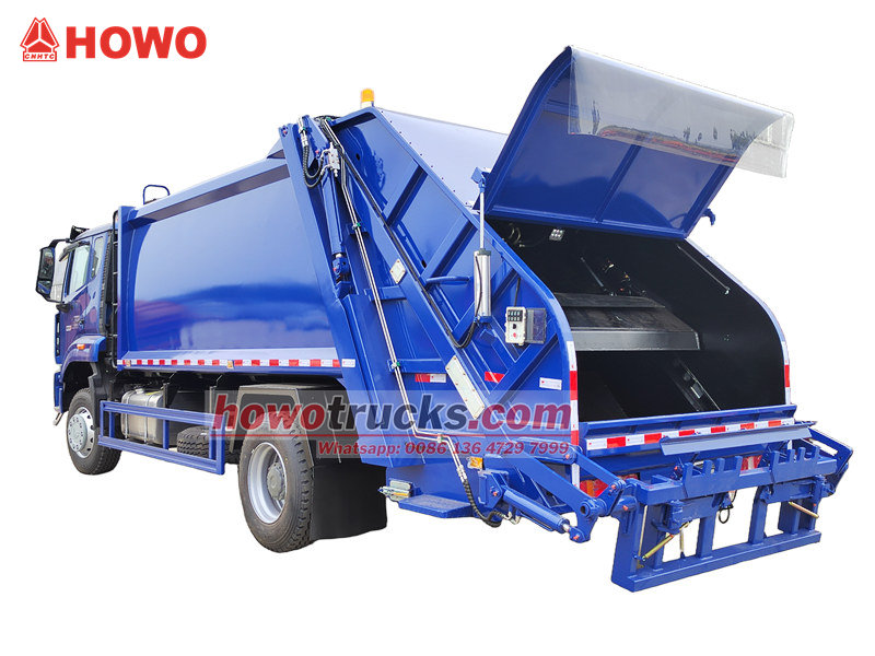 Howo 15cbm bakkomprimerande sopbil (även kallad Howo 15cbm baklastare sopbil, HOWO 300hk avfallskomprimeringsbil, Howo 15cbm sopkomprimeringsbil, Howo 300hk sopkomprimeringsbil, Howo baklastad dumpsterbil, Howo 15cbm baklastare sopbil, Howo baklastare komprimeringsbil, etc..)är en ny typ av sanitetsfordon som speciellt används för att samla in, transportera och bortforsla sopor.