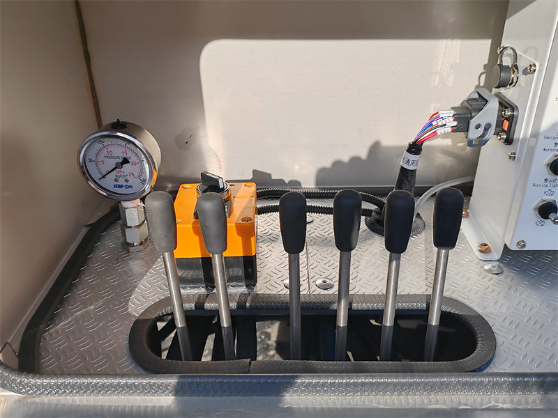 4. Tillval Utrustning: Högkvalitativ hydrauldel, teleskoplyftarm i ett plan, två enheter hydraulisk vinsch på 12 ton, verktygslåda, två stödben, manuell manöveranordning, två strålkastare, en larmlampa och grundläggande tillbehör