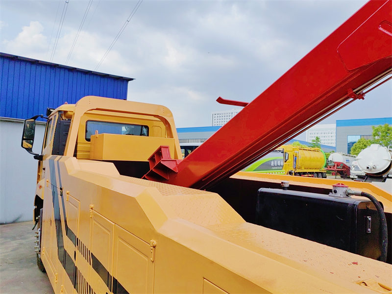 4. Tillval Utrustning: Högkvalitativ hydrauldel, teleskoplyftarm i ett plan, två enheter hydraulisk vinsch på 12 ton, verktygslåda, två stödben, manuell manöveranordning, två strålkastare, en larmlampa och grundläggande tillbehör