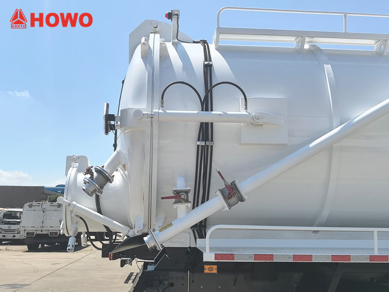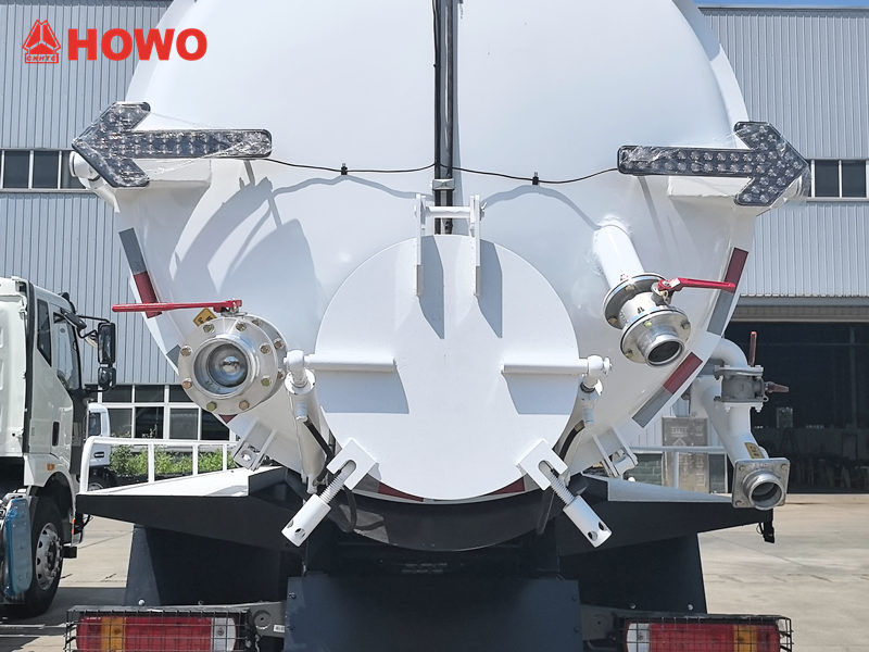 Howo vakuumpumpbilens tank är tillverkad av höghållfast kolstål eller rostfritt stål, vilket erbjuder utmärkt tryck- och korrosionsbeständighet, vilket säkerställer en tät tätning och strukturell styrka under långvarig användning. Tanken är fodrad med en korrosionsskyddsbeläggning för att förlänga livslängden och minska underhållskostnaderna, vilket möter behoven hos olika kunder.