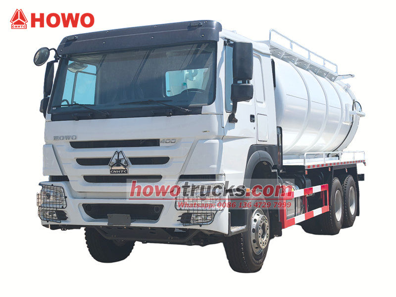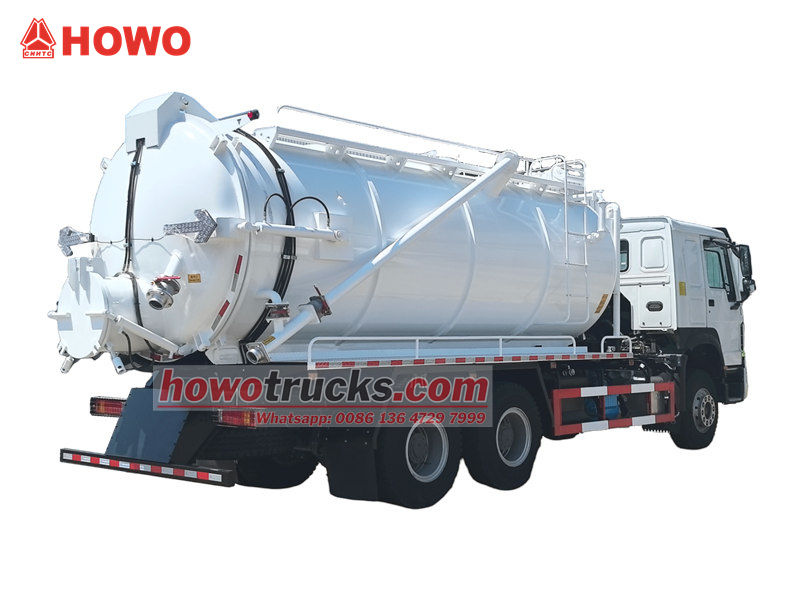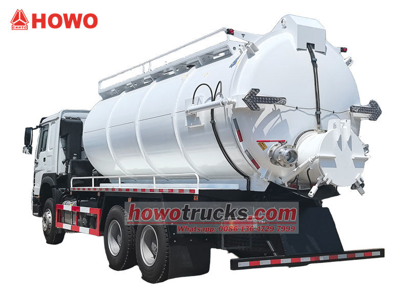 2x13000Howo 20 cbm vakuumpumpbil är ett specialfordon designat för rengöring och transport av smuts, slam och avloppsvatten. Den används ofta inom kommunal renhållning, industri- och gruvföretag samt inom fastighetsförvaltning.