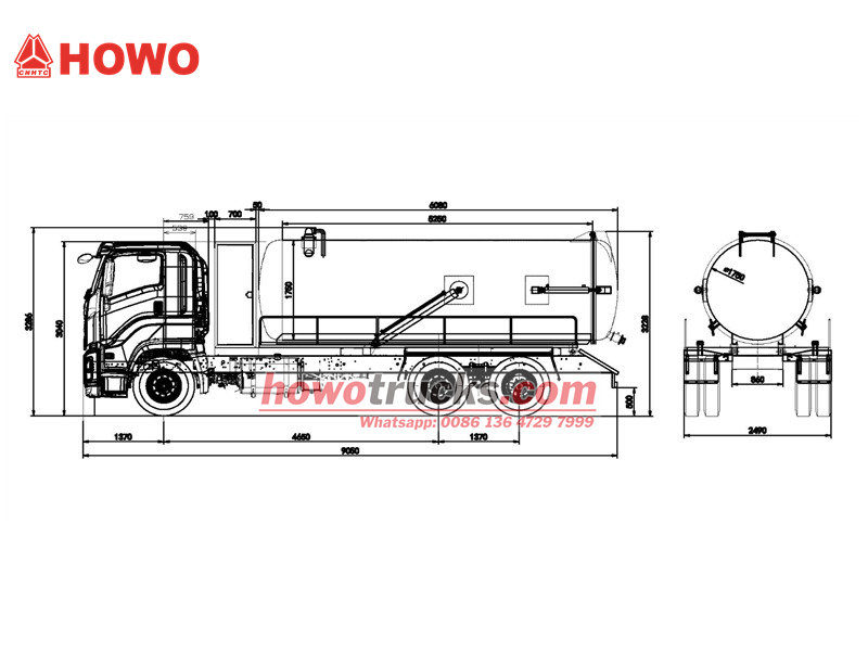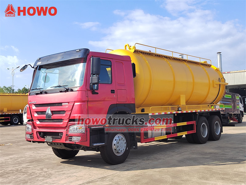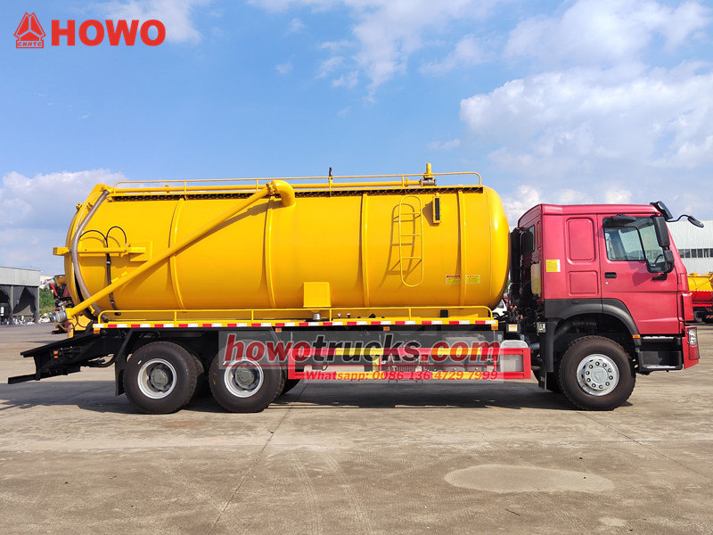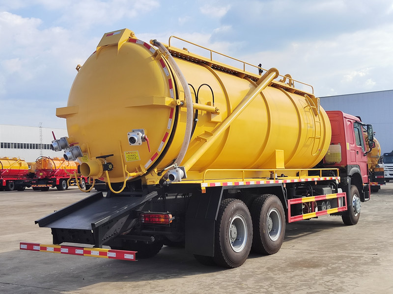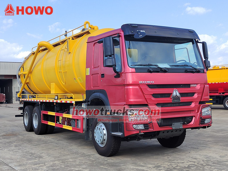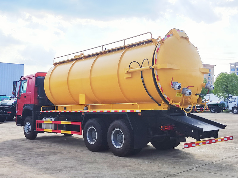 HOWO-avloppssugaren är byggd på ett SINOTRUK HOWO 6×4-chassi och har en 20 kubikmeter stor kolstålstank i kombination med en italiensk Jurop-vakuumpump, som kan generera en hög vakuumnivå på 93 %. Fordonet drivs av en Weichai-motor på 400 hk och en 10-växlad växellåda och är utrustat med en hydrauliskt låst baklucka, ett överfyllningslarmsystem och en 10 meter lång sugslang. Den är speciellt utformad för storskaliga avfallstransporter i flodkanaler och kommunala rörledningsnät.