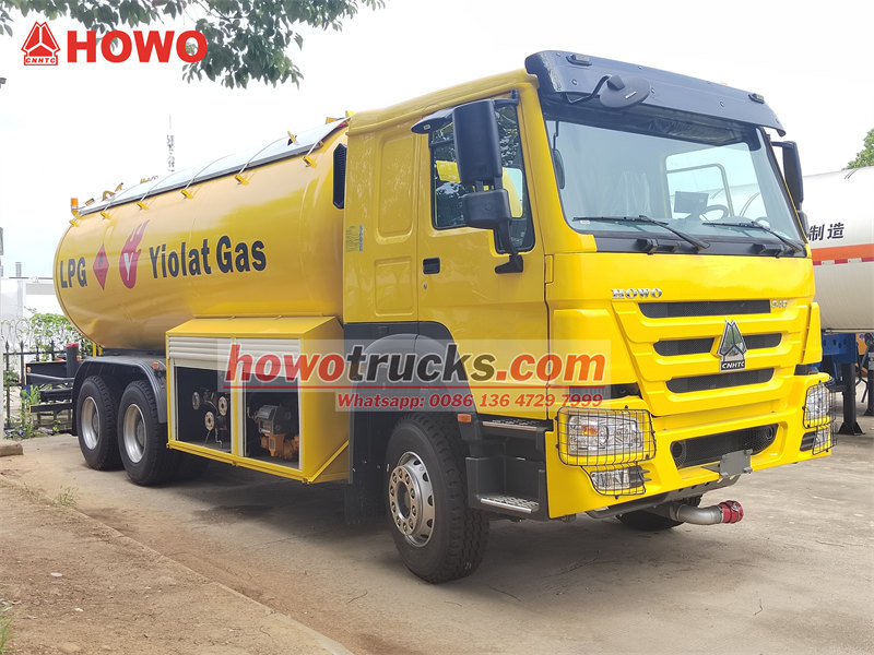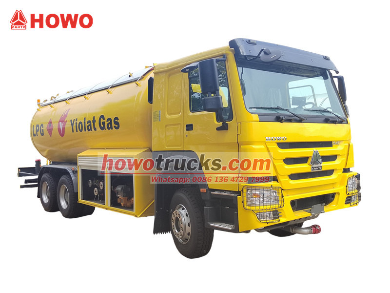 18000HOWO 20 000-liters LPG-tankbil är ett högtryckstankfordon som är speciellt konstruerat för transport av flytande petroleumgas. Den är byggd på ett HOWO 6x4-chassi, drivet av en 340-hästkrafters motor som uppfyller Euro III-utsläppsnormerna. Tankbilens kaross är tillverkad av Q345R-stål med 12 mm förtjockade gavlar, med en kapacitet på 20 000 liter. Den genomgår sandblästring, rostborttagning och flera korrosionsskyddsbehandlingar för att säkerställa långsiktig hållbarhet.
