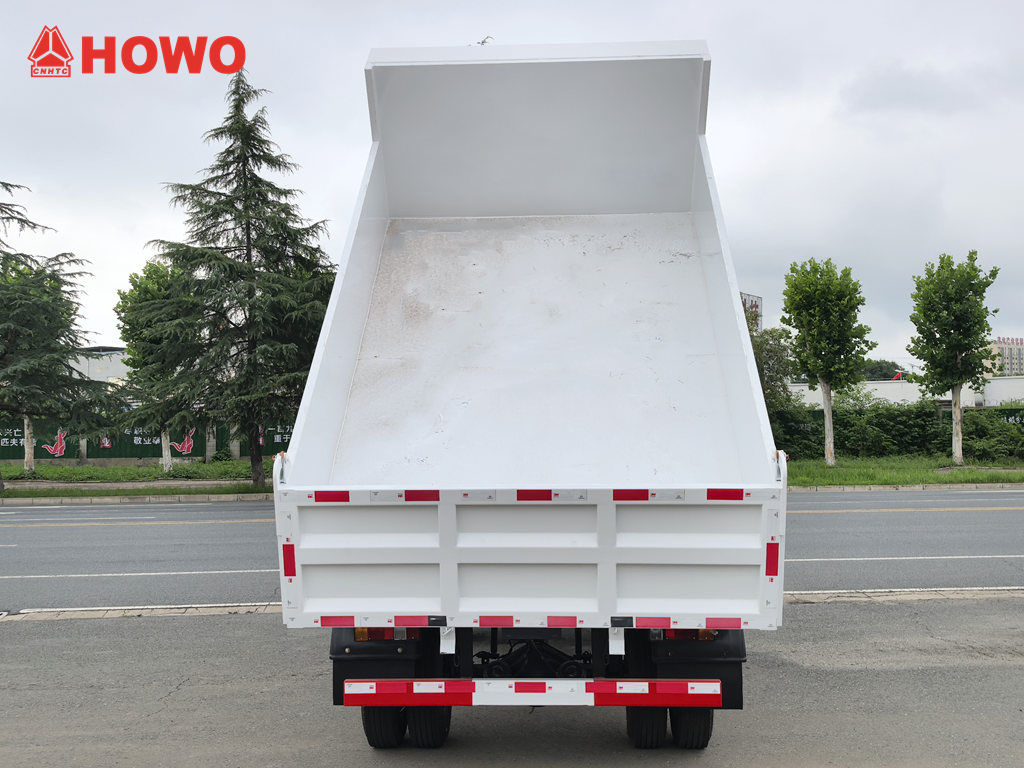 Howo 3 Ton terränggående minidumper är modifierad baserat på HOWO lätt lastbil 4x4 RHD chassi, med en hjulbas på 3360 mm, utrustad med YN4102QBZL 116 hk dieselmotor, WLY6TS55C-6-växlad växellåda och en tipplåda av kolstål med tre sidor och fyra bottnar, 3550 × 2100 × 550 mm, central lyftning, stabil lyftning, ren och snabb lossning, bakdörrarna kan öppnas och fordonet styrs av styrventilen på förarsidan, som är lätt att manövrera.