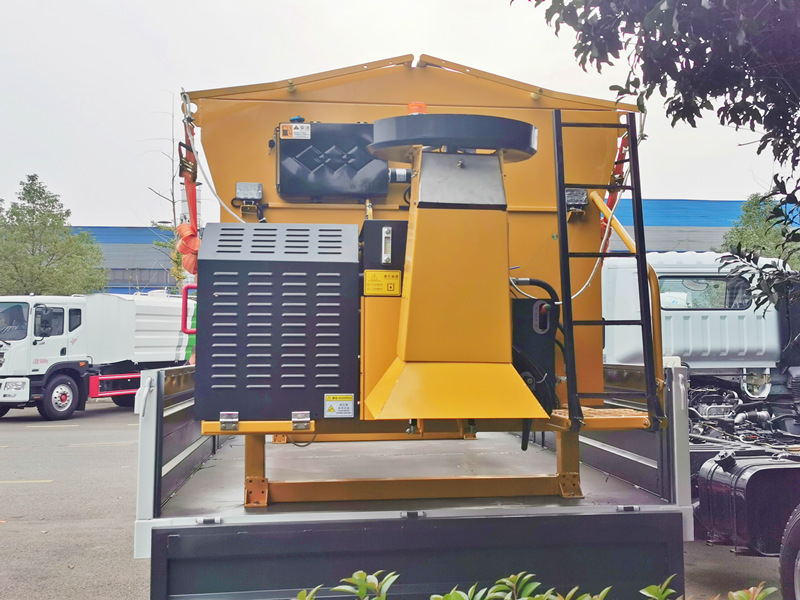 4CBM snösmältningsmedelsspridare CS-SJ4000 installerad på det kompletta flaket med flak, full kapacitet 4000L baserad på högkvalitativt rostfritt stål Q235-material, motor matchad med kedjesystem för effektivt arbete, tillgänglig spridningsbredd kan vara 2-10 m och saltmedelsspridningskapacitet 20-150 g/m2, helt justerbar typ. Spridningsplattans diameter 550 mm med arbetshastighet 5-20 km/h, tysk PLC-styrd modell i hytten för säkert arbete.