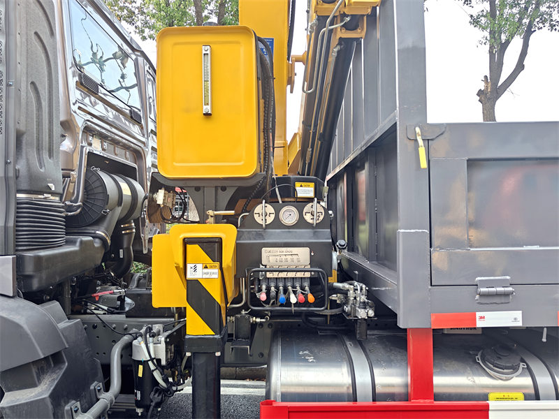 Den övre kroppav Howo frakt lastbil är utrustad med en hopfällbarbomkran med en maximal lyftkapacitet på 6 tonoch en full 520° rotation. Kranens vikt är 1700kg och installationsutrymmet är 750 mm. Kontrollpanelen kan väljas på engelska eller andra språk för att underlätta för användare med olika behov.