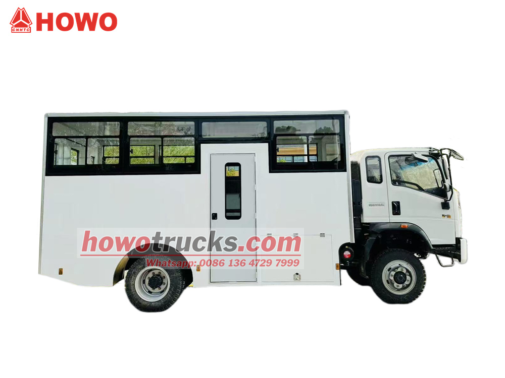 HOWO 4x4 fyrhjulsdriven trupptransportbil är modifierad på HOWO lätt lastbilschassi med 1880 rader halvfyrhjulsdrift, med en hjulbas på 3360 mm, utrustad med en Weichai WP3NQ140E50-motor och en WLY6G120-växellåda. Övre karossen är en låda med två rader långa säten som rymmer 15 soldater. Det finns långa fönster på båda sidor av fordonet och ett litet fönster på bakluckan. Det finns också en enkeldörr på höger sida av fordonet och en dubbeldörr på bakluckan för på- och avstigning. Bilen är utrustad med luftkonditionering.