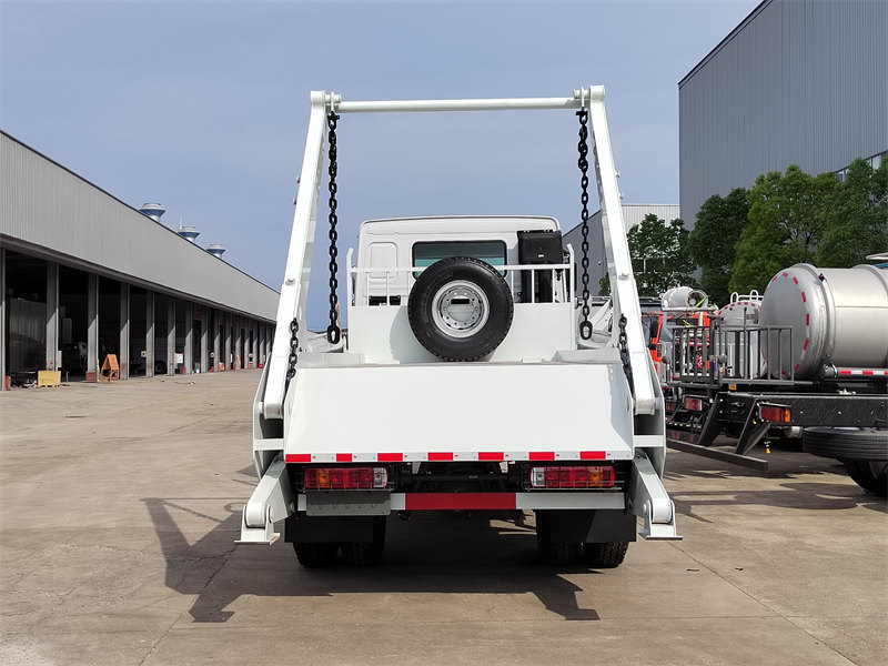 10000HOWO 4×4 Skip Loader Garbage Truck är ett specialiserat saneringsfordon som använder ett hydraulsystem för att driva en svängarmsmekanism för mekaniserad lastning och lossning av sopcontainrar. Den är byggd på ett HOWO 4×4 fyrhjulsdrivet chassi, drivet av en Sinotruk 266 hk motor, och matchad med en HOWO 10-växlad växellåda och höghållfasta axlar, vilket säkerställer stark bärförmåga och tillförlitlighet även under tunga belastningar och utmanande vägförhållanden. Överbyggnaden är tillverkad av höghållfast stål, vilket ger robust och hållbar prestanda. Det hydrauliska svängarmssystemet fungerar smidigt och kraftfullt, med en lyftkapacitet på över 6 ton. Varje driftscykel tar mindre än en minut, vilket säkerställer hög effektivitet och tidsbesparingar.