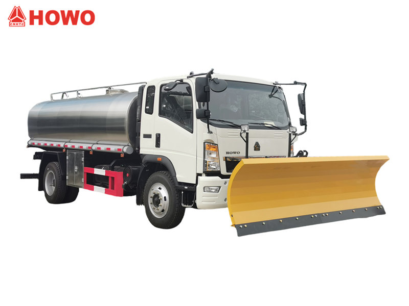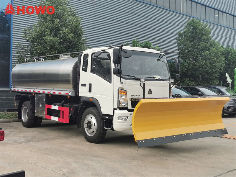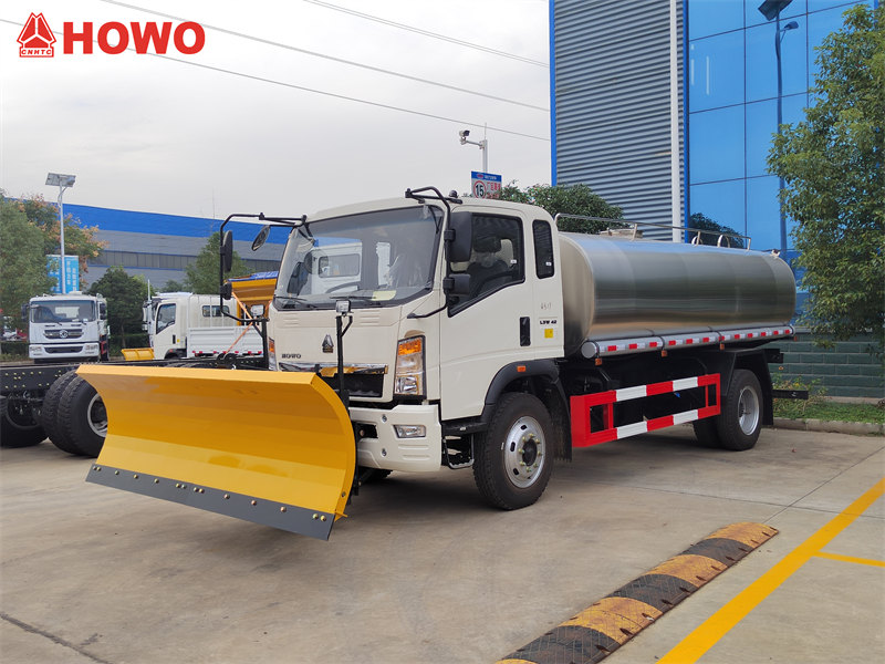 HOWO 8000L dricksvattenlastbil är ett mångsidigt specialfordon designat för transport av dricksvatten. Byggd på ett HOWO 4×2-chassi och driven av en 154 hk motor, levererar den pålitlig prestanda och anpassningsförmåga till komplexa vägförhållanden. Fordonet har en 8000-liters tank i livsmedelsklassat rostfritt stål och en högeffektiv självsugande pump för att garantera vattensäkerhet. Dessutom är den utrustad med en 3-meters justerbar snöplog framtill, kapabel till ±30° avböjning, vilket ger dubbel funktionalitet för snöröjning. Denna lastbil är lämplig för stads- och landsbygdsvattenförsörjning, sanitet och snöröjning och erbjuder multifunktionell användbarhet.