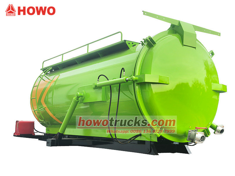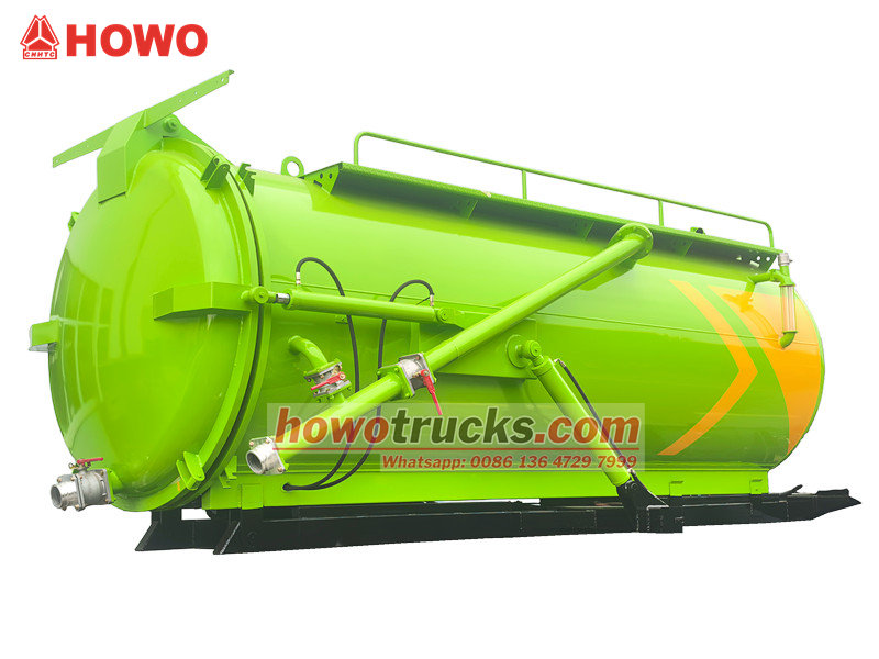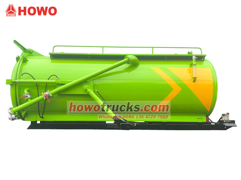 Howo 8cbm cesspool sugtankbilskropp (även kallad 8cbm vakuumsugpumpbilssats, 8 000 liters vakuumtankbils övre kaross, 8cbm vakuumavloppssugbilssats, avloppsavfallstankbils övre karosssats, 8cbm vakuumtankbilsöverbyggnad, slamvakuumpumptankbilssats, vakuumsugbils övre karosssats, etc.) kommer att användas för montering på chassit för att rengöra och samla upp vätska såsom smutsigt vatten. Den är lämplig för rengöring av avlopp, kloakbrunnar, brunnar, rännor etc.