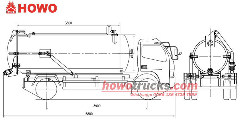 ●Howo 8cbm cesspool-sugtankens kropp är utrustad med ett högeffektivt vakuumpumpsystem som genererar kraftfullt negativt trycksug för att säkerställa att fasta och flytande blandningar som avloppsvatten, slam och olja snabbt och noggrant sugs in i tanken.