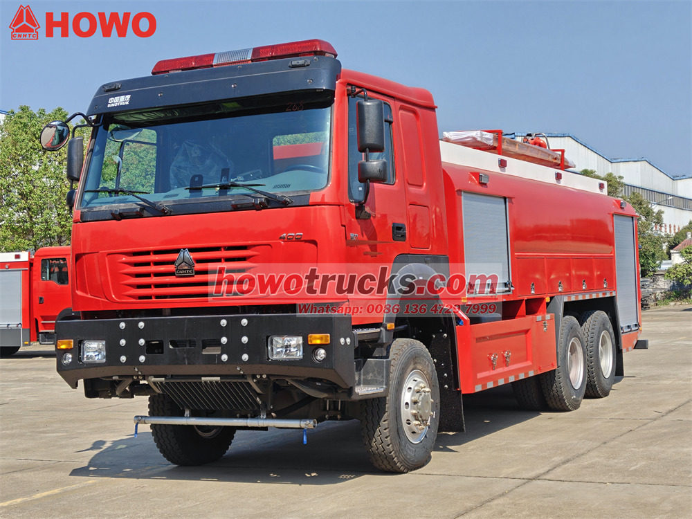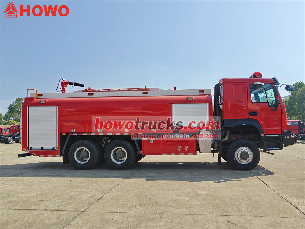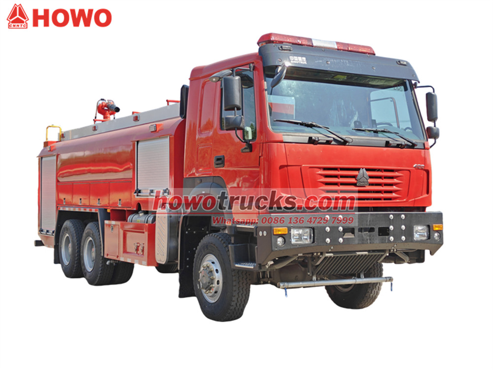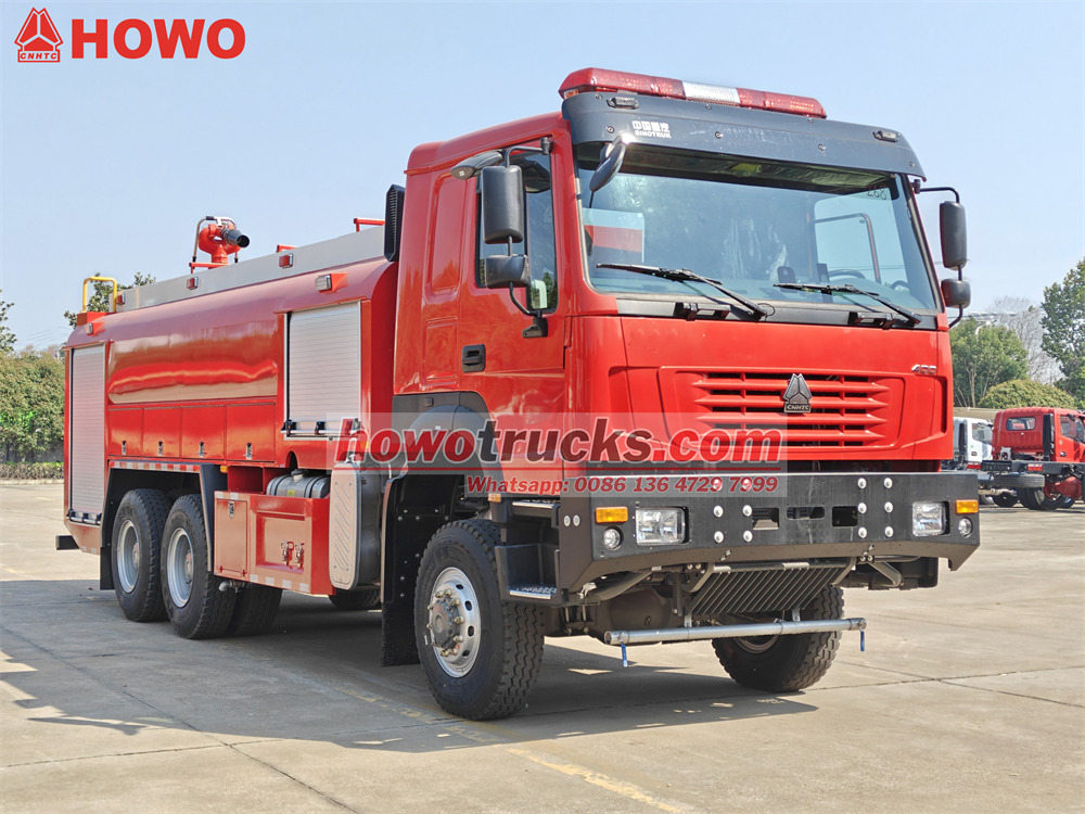 The Vattentändningsbrand Howo terrängbil använder ett Sinotruk tungt chassi med en drivform på 6x6. Den är utrustad med enWP12S400 E201 motor med en nominell effekt på 400 hästkrafter och en manuell växellåda med 12 framväxlar och 2 bakväxlar. Brandbilen Howo 6x6 har en tankkapacitet på 8000 liter vatten och 1500 liter skum och är tillverkad av PP-kompositmaterial med korrosionsskyddande egenskaper. En brandövervakningsmonitor är installerad på taket med ett flöde på 45 l/s och en räckvidd på mer än 55 meter.