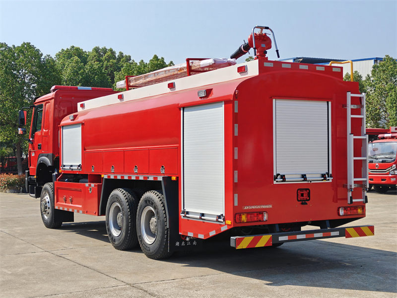 13000*2De Howo 6x6 brandbil är en perfekt kombination av kraftfull prestanda, utsökt hantverk och praktiska fördelar. Denna Howo brandbil är utrustad med Isuzus kraftfullaWP12S400 E201motor, med en effekt på 400 hästkrafter och ett 6x6 fyrhjulsdriftssystem som räcker för att hantera olika nödsituationer. Dess maxhastighet kan nå 95 km/h, vilket säkerställer att brandmännen snabbt kan nå brandplatsen.