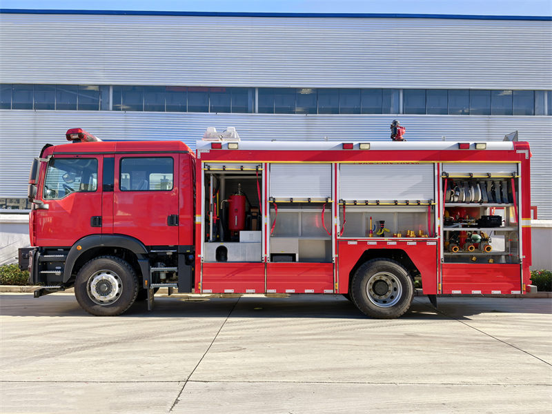 Howo lätta brandbil är ett räddningsfordon som perfekt balanserar manövrerbarhet och funktionalitet. Utrustad med en kraftfull Yuchai-motor på 160 hästkrafter, ett lätt 4x2-drivsystem och en 6-växlad växellåda kan Howo-brandbilen navigera smala och trånga gator och snabbt reagera på små bränder i stadsområden. Dess kombination av en 3000-liters vattentank och en 1000-liters skumtank möter olika brandbekämpningsbehov. Utrustad med en välkänd kinesisk brandpump, som erbjuder ett tryckområde på 1,3-2,5 MPa och ett flöde på 30 L/s, kan den enkelt hantera ett brett spektrum av bränder. En 360-graders roterande brandmonitor med en räckvidd på 45-55 meter förbättrar brandbekämpningens effektivitet avsevärt.