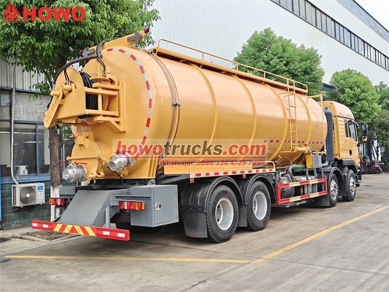 Howo 8x4 tungrengöringsbil med vakuumtank har blivit ett branschriktmärke med sin utmärkta prestanda och multifunktionella design. Utrustad med en kraftfull Weichai-seriemotor med en maximal effekt på 350 hk, kombinerat med en högtrycksrengöringspump (tryck 16-19 MPa) och ett avloppssugsystem, kan den snabbt muddra avlopp, septiktankar och andra komplexa miljöer. Avloppstankens volym är upp till 20 kubikmeter, med stor kapacitet och extremt hög effektivitet i en enda operation. Den har en modulär design och stöder valfria frontvindor, vätskenivåmätare och sprinklers för att möta olika behov.