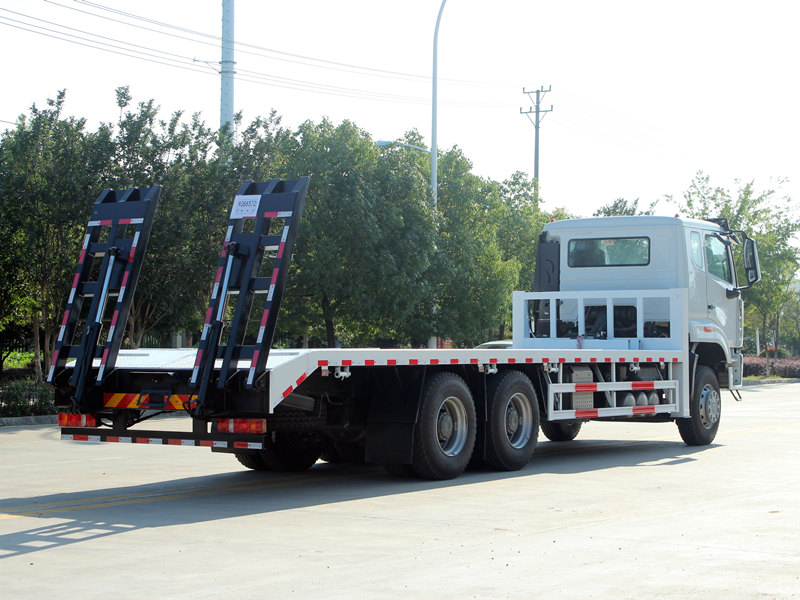 Detta HOWO NX självlastande lastbil är utrustad med professionella och kraftfulla funktioner. Flaket är tillverkat av 8 mm tjocka halkfria stålplattor med måtten 8600×2500 mm, speciellt utformade för säker transport av medelstora grävmaskiner och annan utrustning. Fordonets bakdel är utrustat med två 2 meter långa hydrauliska ramper för att underlätta lastning och lossning av maskiner. Dessutom förbättrar två hydrauliska stödben fram, vardera med en lyftkapacitet på 20 ton, stabiliteten avsevärt vid arbete i ojämn terräng. En 4-tons hydraulisk vinsch är också installerad framtill, som kan användas för bärgningsuppgifter eller säkring av utrustning, och som heltäckande uppfyller filippinska användares krav på mångsidighet och tillförlitlighet.