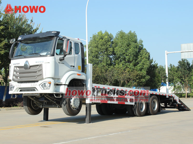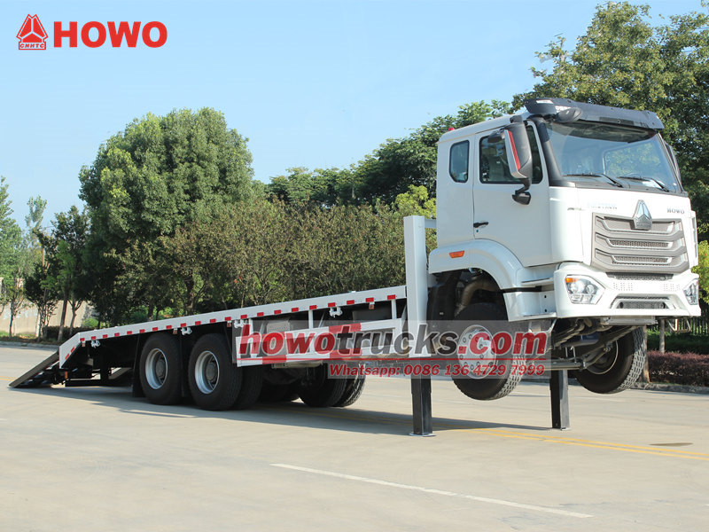 HOWO NX Self Loader Truck är ett professionellt fordon speciellt utformat för transport av stora anläggningsmaskiner. Byggd på ett HOWO 6×4-chassi, drivs den av en 400 hk Weichai högtrycks-common rail-motor, vilket ger robust prestanda med hög effektivitet och miljövänlighet. Fordonet är utrustat med ett halkfritt flak på 8600×2500 mm, två 20-tons hydrauliska stödben framtill och en 4-tons hydraulisk vinsch, vilket bildar ett säkert och pålitligt lastnings- och lossningssystem som helt uppfyller transport- och driftsbehoven på plats för tunga grävmaskiner och annan utrustning.