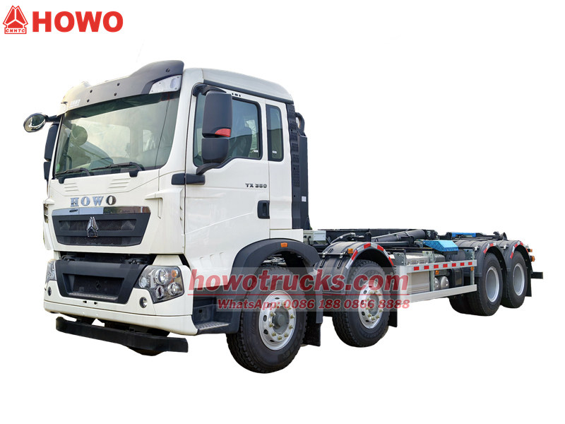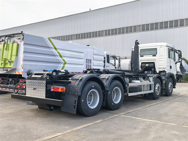 Sinotruk HOWO Hooklift är designad och Tillverkad som en 26-tons lastväxlare för sopbilar, med teleskopisk huvudarm, mekanisk kroksäkerhet, dubbel lyftcylinder och extern hydraulisk låsning. Den är även utrustad med CE-standard elektrisk styrenhet, vilket gör driften på sidan av hytten säker och tillförlitlig. Anpassade 26-tons lastväxlare är monterade på HOWO 8x4 lastbilschassi, matchade med 7m soptunnor. Howo 26-tons lastväxlarutrustning är lämplig för lastning, lossning och transport av tunga varor, och kan även matchas med container.