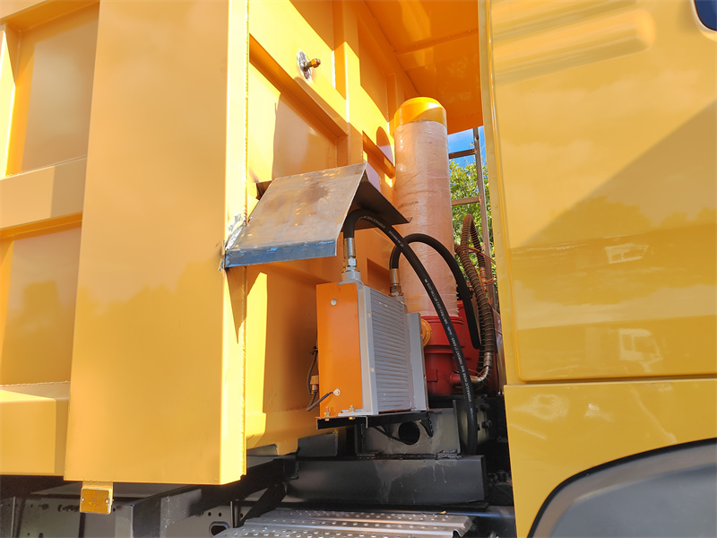 Optional front snow removal shovelDe HOWO TX snösmältningsspridare med sandsalt är ett snöröjningsfordon med en snösmältningsspridare installerad i en komplett dumper och en frontmonterad snöplogsborste. Byggd på det kraftfulla Sinotruk HOWO-chassit, har den en stor, hydrauliskt driven snöröjningsvalsborste framtill, som snabbt röjer snö från vägen. Den bakre dumpern har ett 10 kubikmeter stort snösmältningsspridningssystem, som använder ett spiraltransportörsystem med en justerbar spridningsbredd på 2–12 meter och kontrollerbar spridning med upp till ±3 % noggrannhet. Detta multifunktionella fordon kombinerar snöröjning och snösmältningsspridning, vilket avsevärt förbättrar effektiviteten och den totala produktiviteten vid snöröjning på stadskärnor och motorvägar.