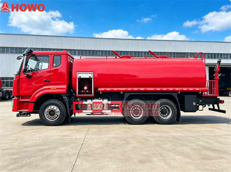 13000*2The Howo wildland water tender fire fighting vehicle is a professional firefighting vehicle designed to respond to emergency fire situations. It is equipped with the HOWO NX heavy chassis and can accommodate 3 passengers. Equipped with a WP10.340E22 engine, the output power reaches 340HP, meeting the power needs of the HOWO NX fire water sprinkler truck. The Howo water wagon fire truck adopts EURO Level 2 emission standards, and the emissions are clean and environmentally friendly. Equipped with 12.00R20 tires to ensure stable driving in emergency situations. In terms of fire protection performance, the Howo NX Fire fighting truck has a water tank capacity of 15000 L. It is equipped with CB10/60 fire pump and PL32 fire cannon, and can provide 36L/S@1.0MPa with a rated flow rate of 32L/S@2.0MPa and a range of more than 55 meters, it ensures effective fire extinguishing operations.