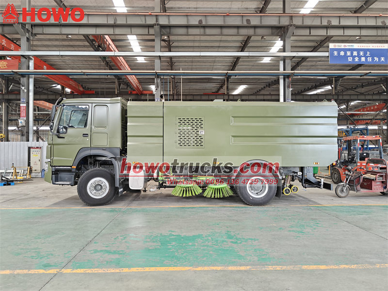 Den tunga kinesiska Sinotruk HOWO-sopbilen är känd för effektivitet och hantering av stadsavfall. Det är ett specialdesignat fordon för sopning, rengöring och vattenborttagning av vägar för dammreducering. Det kan användas i stor utsträckning på stadsgator, torg, fabriker, bostadsområden, parker och flygplatsvägar. Som den nydesignade och producerade modellen kan HOWO-sopbilen inte bara rengöra gatusop, utan även rena och lufta gatorna genom att spruta vatten, vilket säkerställer att vägen är ren och städad, effektivt dammreducerar och förlänger vägens livslängd.