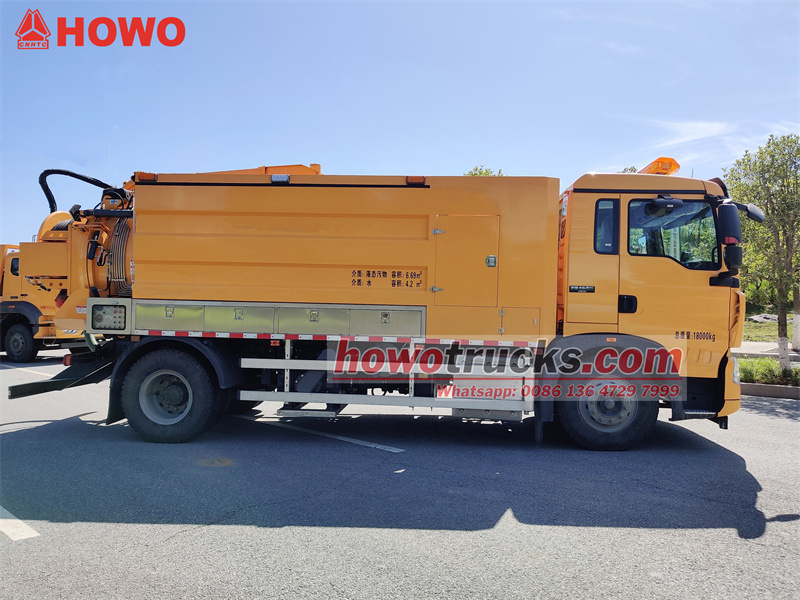 Den kombinerade muddringsbilen HOWO 4x2 på 11 cbm är modifierad baserat på HOWO TX 2280 halvhyttschassi. Den har en hjulbas på 4500 mm och är utrustad med en Sinotruk MC07.31-60-motor och en 6-växlad växellåda. Den är utrustad med en avloppstank på 6,7 cbm och en renvattentank på 4,2 cbm tillverkad av 5 mm tjockt kolstål. Det finns verktygslådor på båda sidor av tankkroppen, och ena sidan är utrustad med en kontrollbox, bakluckevinda, utloppsventil, stege, siktrör etc. Den är utrustad med en Jurop PVT400 vakuumpump och en 3N2-SZ högtrycksrengöringspump.