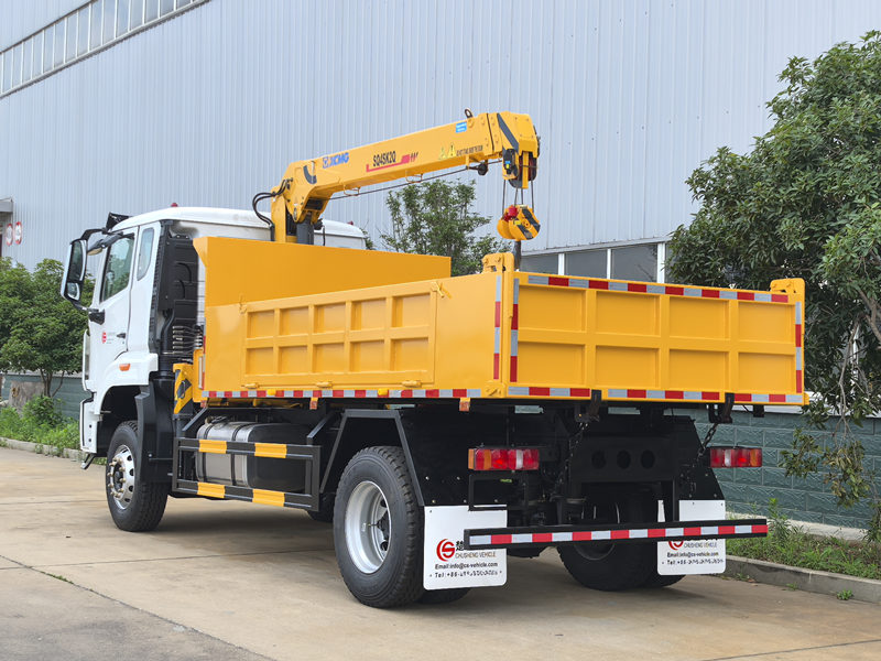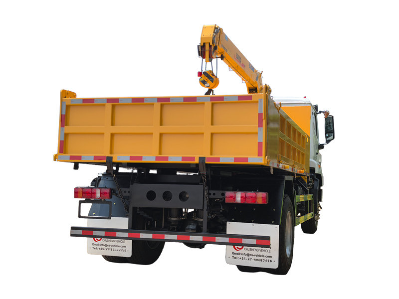SINOTRUK HOWO tippbilsmonterad kran är ett mångsidigt ingenjörsfordon som integrerar både lyft- och självtömningsfunktioner. Utrustad med en höghållfast U-formad bom och ett lyftsystem för lastboxen kan den utföra 360° roterande lyftoperationer samt självlossning av material. Med en maximal lyftkapacitet på 4 ton och en maximal lyfthöjd på 10 meter är den lämplig för olika scenarier som byggarbetsplatser och lager. Utformad med överbelastningsskydd och stödben med stort spann säkerställer den säker och effektiv drift.